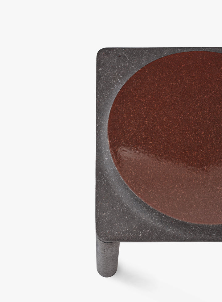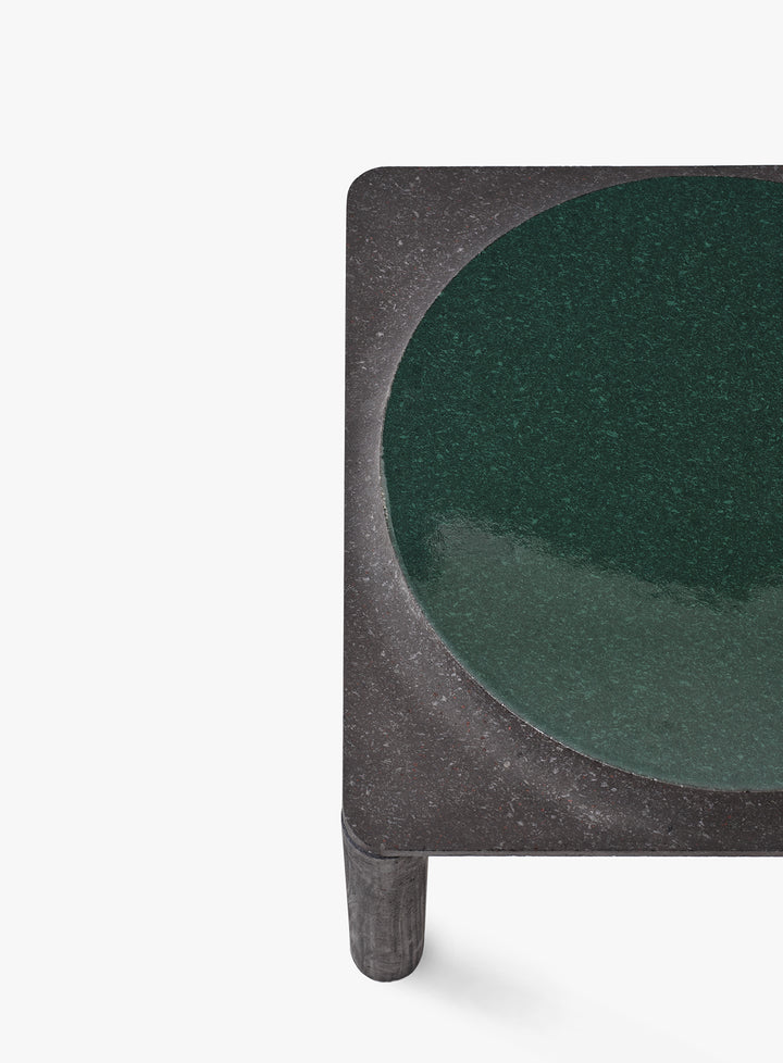 Essential and compact, Mono is a square proportioned table that emphasizes the expressive strength of glazed lava stone.Perfect as a standalone element or combined with other modules from the collection, it creates a play of volumes and material contrasts that interact with light and space.