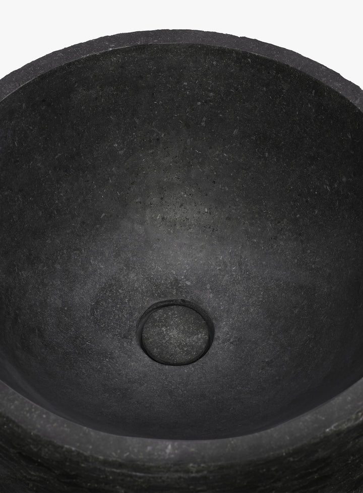 Horizontal incisions create a graphic rhythm on the surface, defining an architectural and sophisticated washbasin. Linea merges the regularity of design with the raw energy of stone.